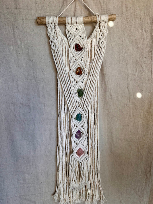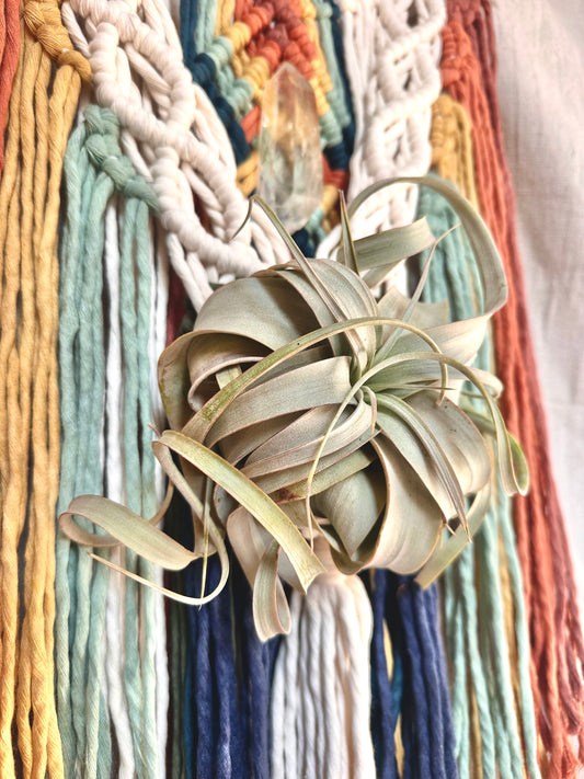 Rainbow Macrame Wall Hanging with Quartz and Airplant