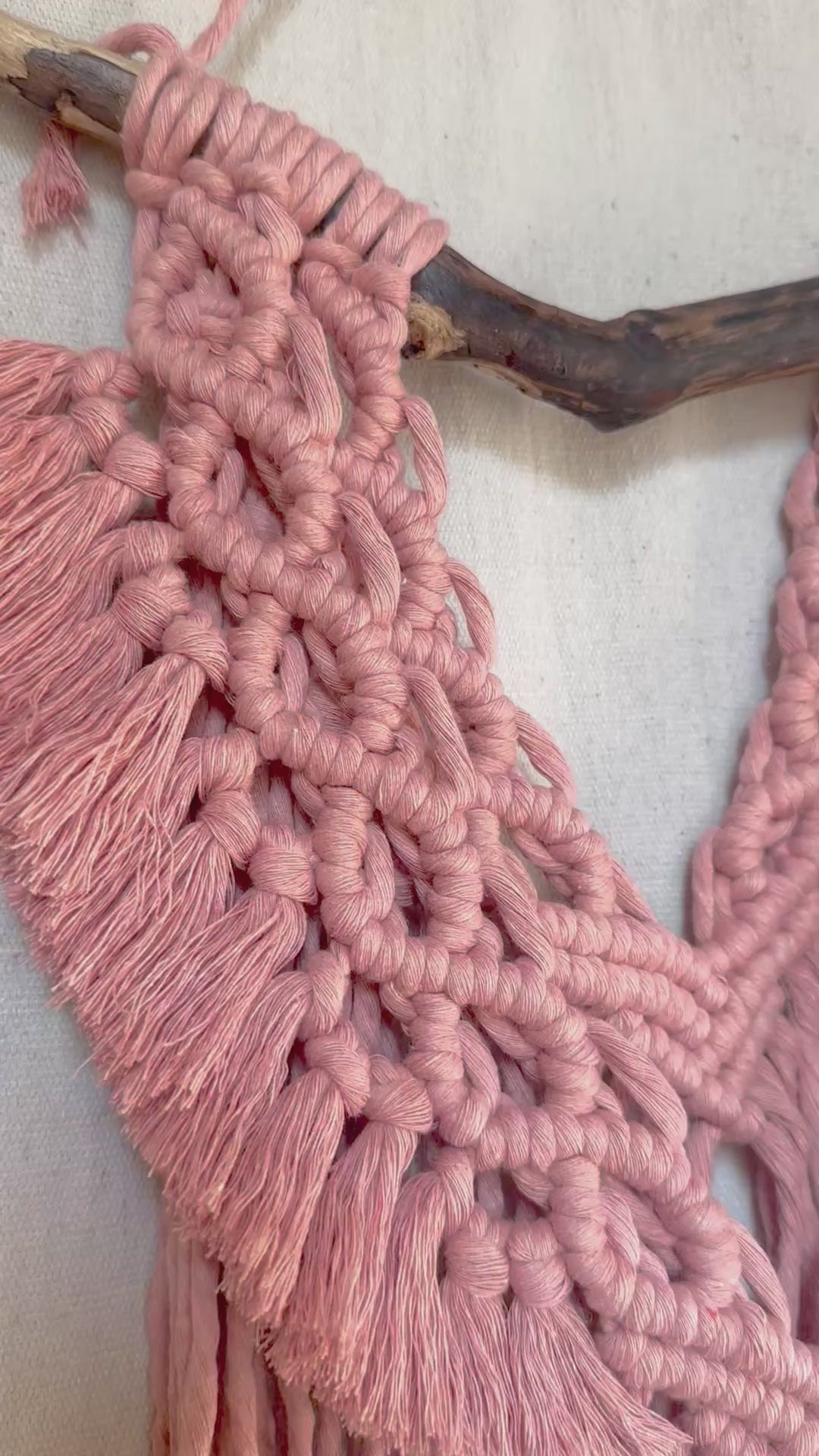 100% all-natural cotton macrame cord and a treated natural wood branch.