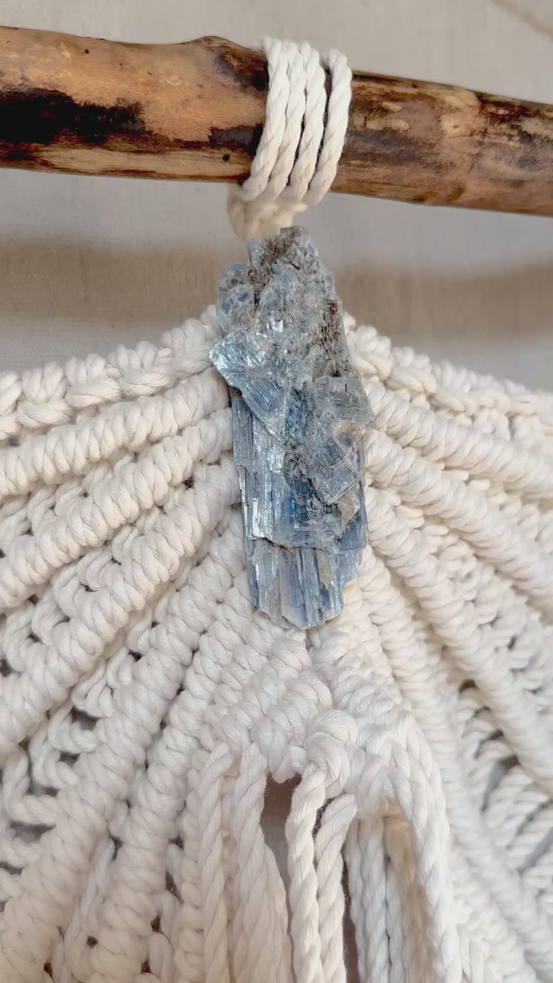 100% all-natural cotton macrame cord, a treated natural wood branch, and an optional genuine crystal.