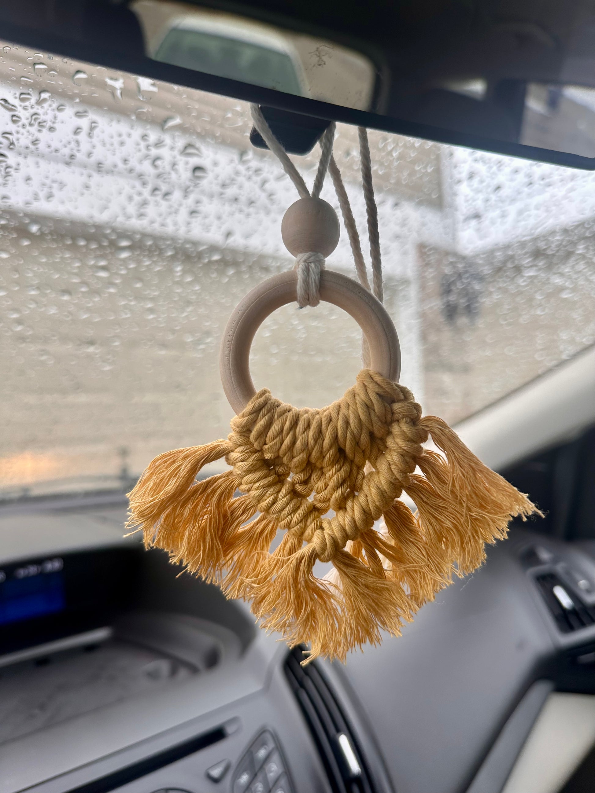 Say goodbye to toxic air fresheners and accessorize your car with a boho macrame essential oil diffuser. Add a few drops of oil to the wood and hang! Happy oiling!✨