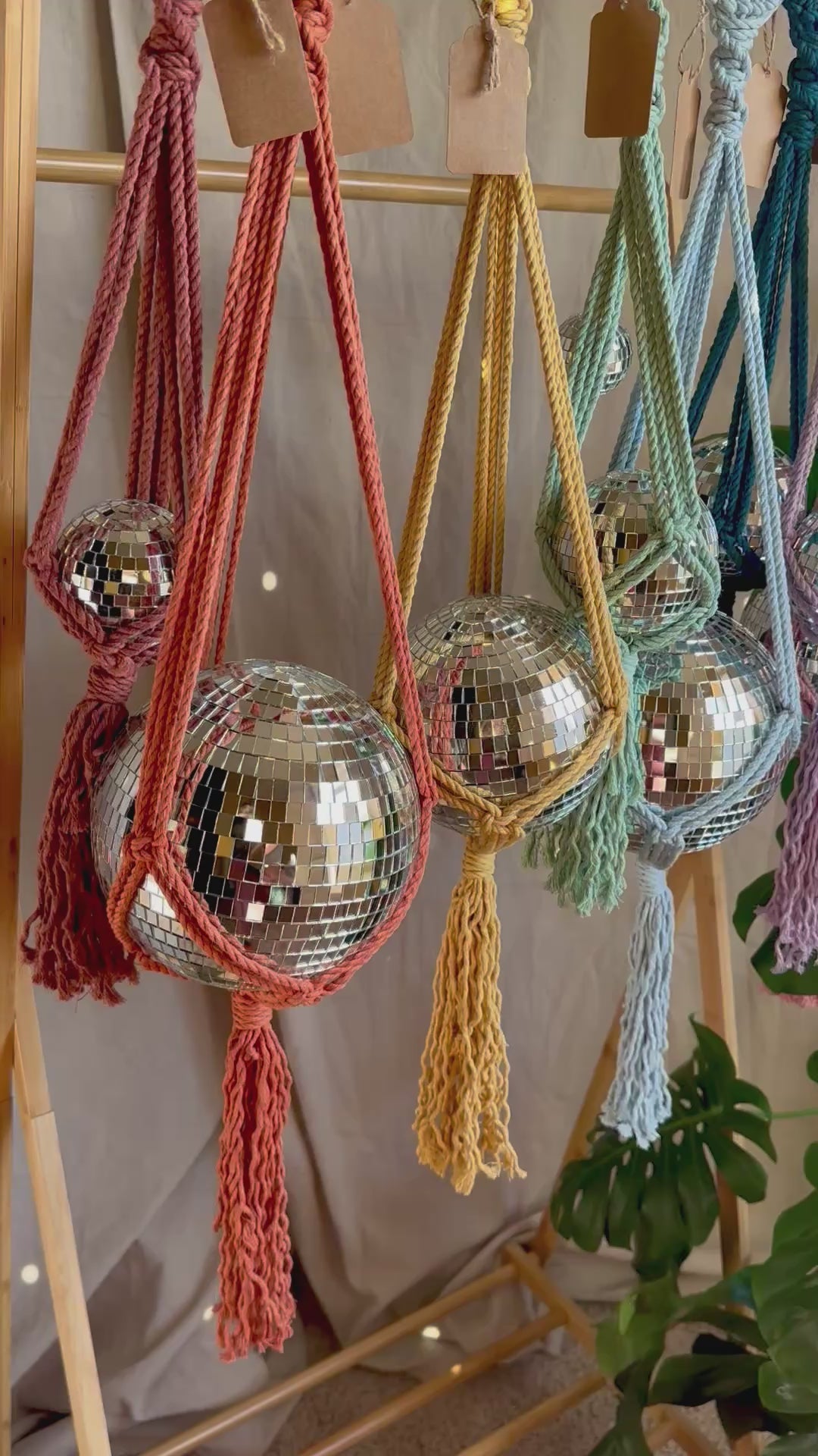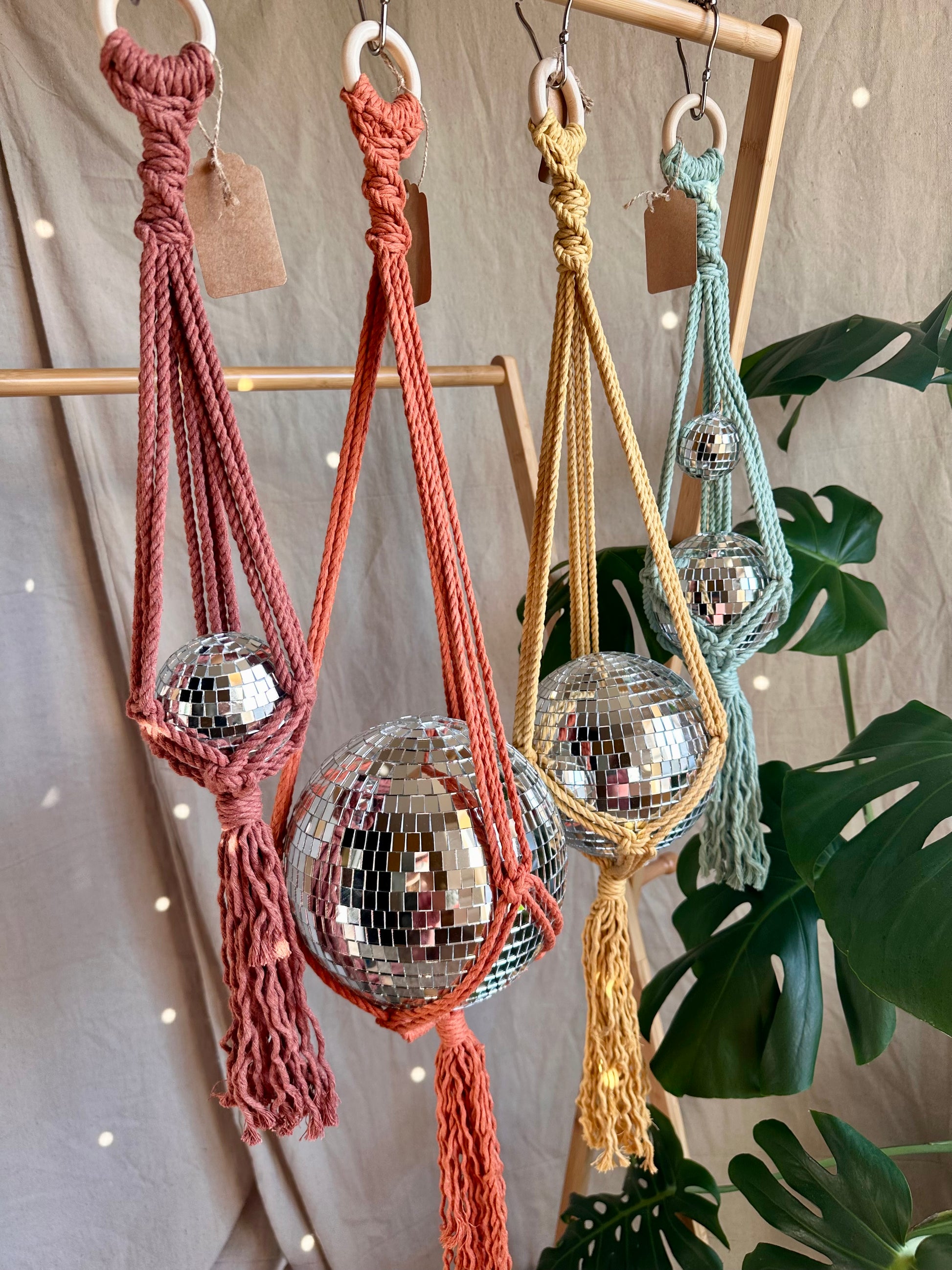 The disco ball macrame hanger is GORGEOUS! The quality of work far exceeded my expectations. I bought this as a gift and kind of want to keep it. Definitely going to buy myself one (or two)!!! Absolutely LOVE!! Thank you!