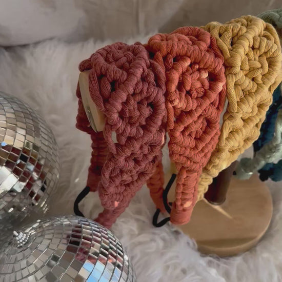 This bohemian macrame headband is the perfect accessory for any hairstyle. Handmade with an elastic nylon band, it offers a comfortable, pain-free fit for all-day wear. Elevate your look and add a touch of boho chic to any outfit.