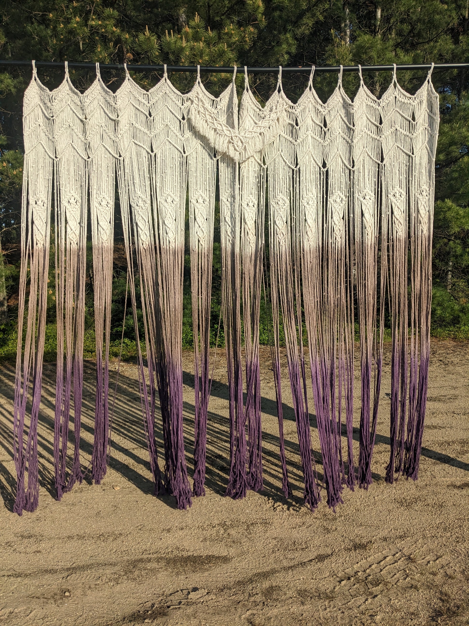 I will work on a custom design with you, to create the perfect piece that represents your love for each other. Made with 100% natural cotton macrame cord, providing a soft feel and a variety of colors. Customize it with hand-dyed ombre or solid pre-dyed cord, as shown in the images. Adorn yours with crystals and beads to truly make it your own. With endless personalization options, your unique style will shine through in your macrame masterpiece.