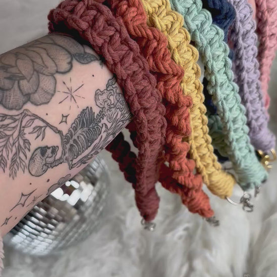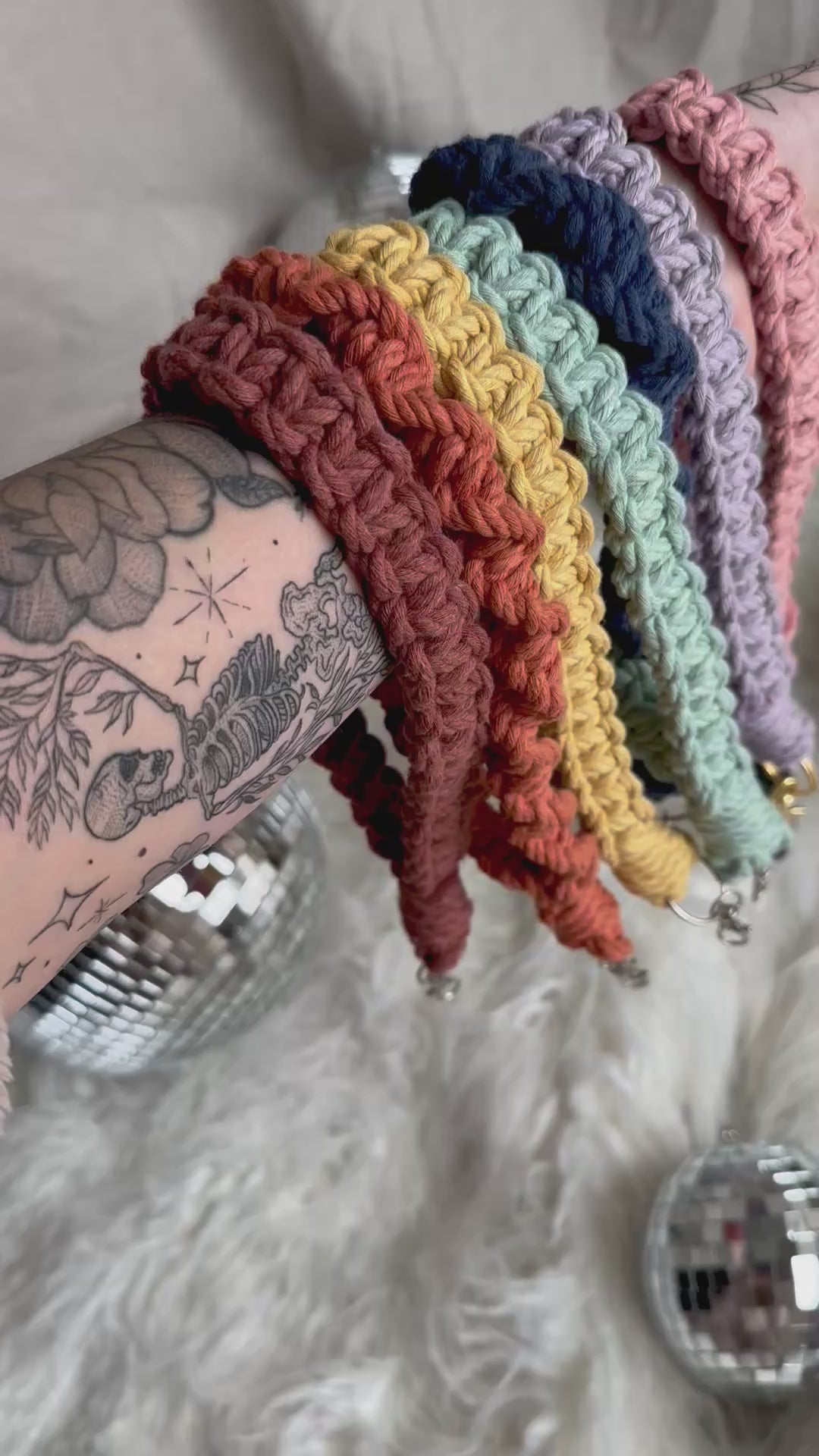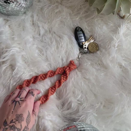 This boho macrame wristlet keychain is the perfect accessory to keep your keys within reach. Lightweight, soft, and comfortable, it easily attaches to your keys, purses, backpacks, or wallets. With 2 styles to choose from, never lose your keys again!